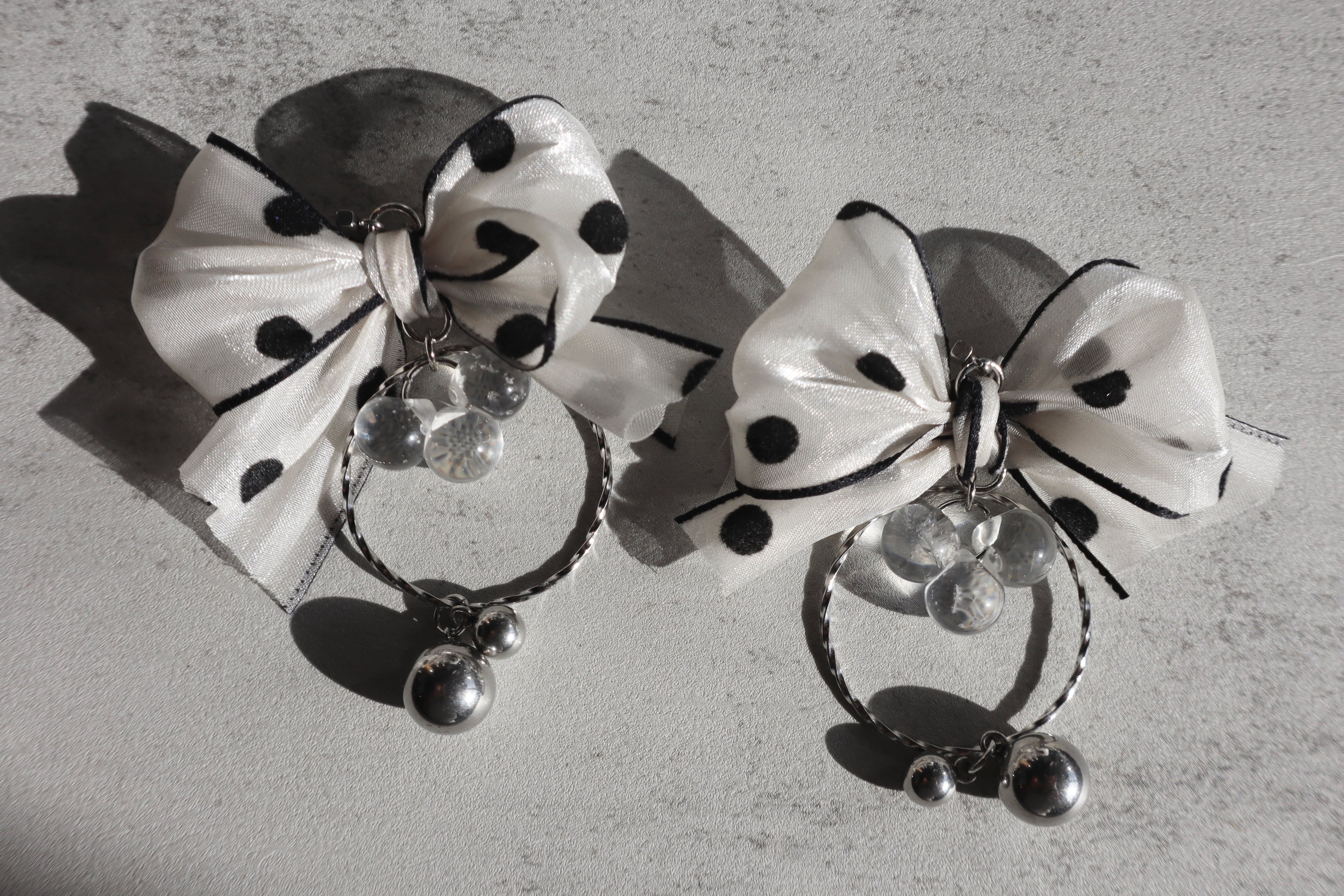 透け感のあるリボンにシルバーカラーのフープを合わせ、軽やかさと存在感を両立しました♡